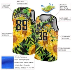 Custom Black Gold-White 3D Pattern Design Sunflowers Authentic Basketball Jersey