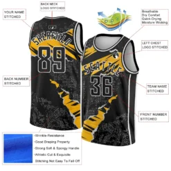 Custom Black Gold-White 3D Pattern Design Abstract Grunge Art Authentic Basketball Jersey