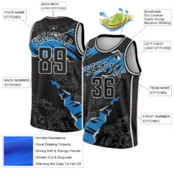 Custom Black Blue-White 3D Pattern Design Torn Paper Style Authentic Basketball Jersey