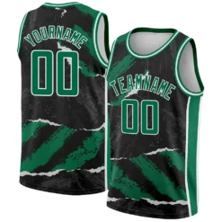 Custom Black Kelly Green-White 3D Pattern Design Torn Paper Style Authentic Basketball Jersey