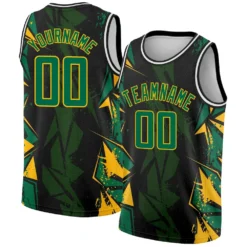 Custom Black Kelly Green-Gold 3D Pattern Design Geometric Shapes Authentic Basketball Jersey