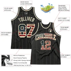 Custom Black Cream Pinstripe Vintage USA Flag-Cream Authentic Basketball Jersey