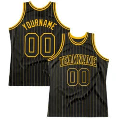 Custom Black Gold Pinstripe Black-Gold Authentic Basketball Jersey