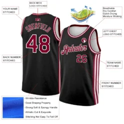 Custom Black Maroon-White Side Stripes Authentic City Edition Basketball Jersey