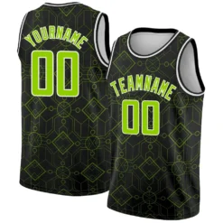 Custom Black Neon Green-White Geometric Shapes Authentic City Edition Basketball Jersey