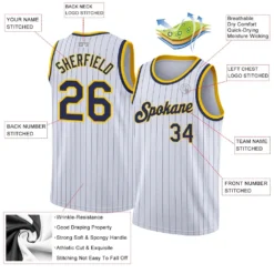 Custom White Navy Pinstripe Navy-Gold Authentic Basketball Jersey