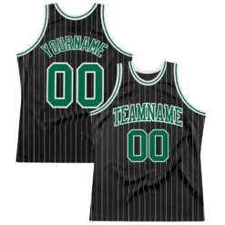 Custom Black White Pinstripe Kelly Green-White Authentic Basketball Jersey