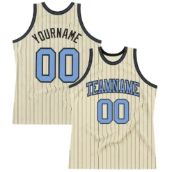 Custom Cream Black Pinstripe Blue Authentic Basketball Jersey