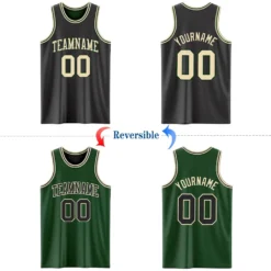 Custom Reversible Black Cream-Green Double Side Basketball Jersey