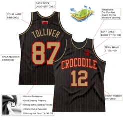Custom Black Gold Pinstripe Black-Gold Authentic Basketball Jersey