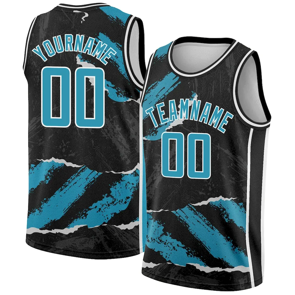 Custom Black Panther Blue-White 3D Pattern Design Torn Paper Style Authentic Basketball Jersey