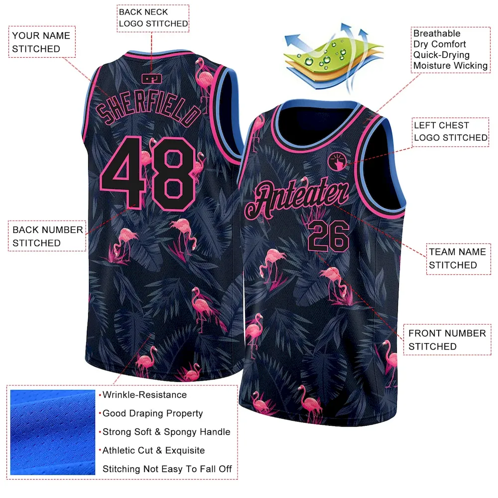 Custom Black Pink-Light Blue 3D Pattern Design Flamingo Authentic Basketball Jersey