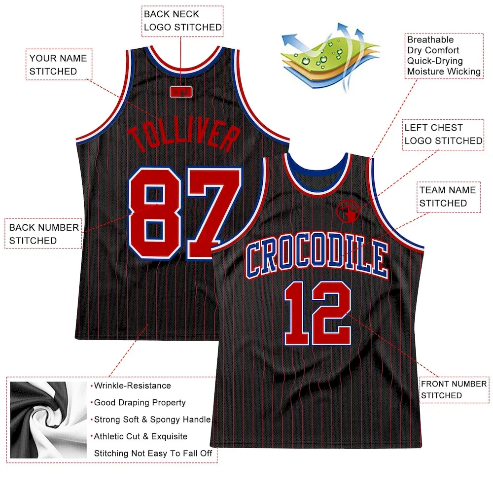 Custom Black Red Pinstripe Red-Royal Authentic Basketball Jersey
