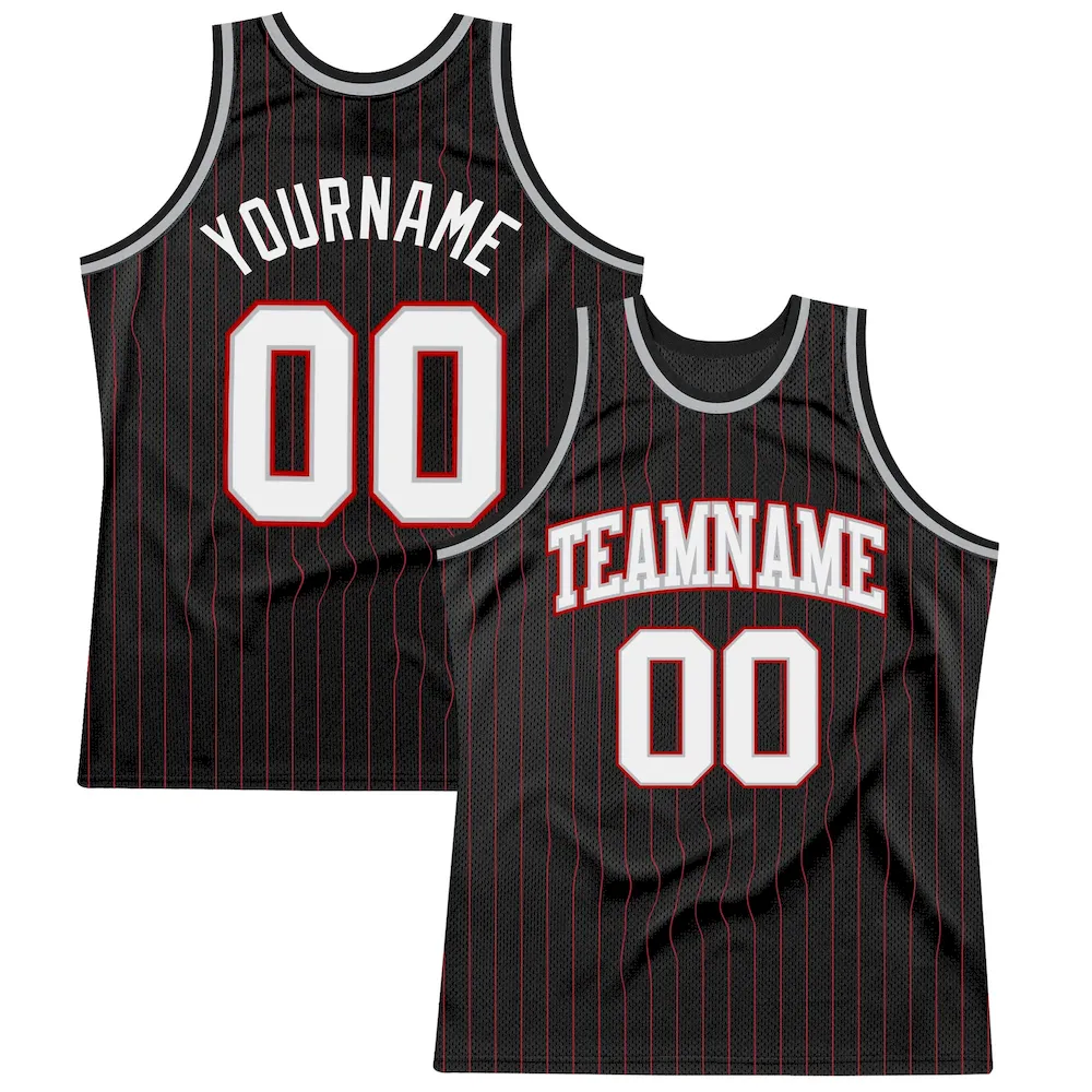 Custom Black Red Pinstripe White Gray-Red Authentic Basketball Jersey