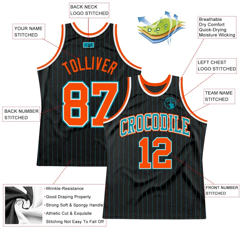 Custom Black Teal Pinstripe Orange-Teal Authentic Basketball Jersey