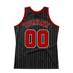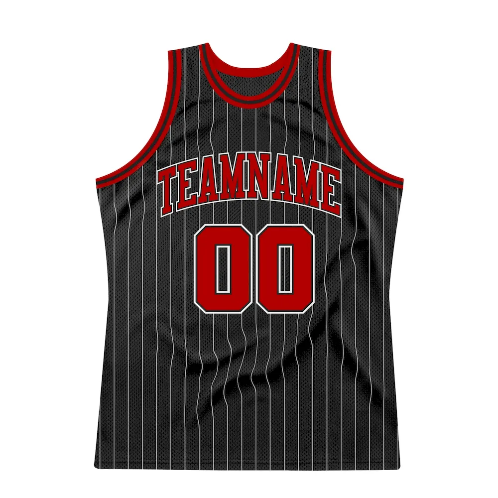 Custom Black White Pinstripe Red-White Authentic Basketball Jersey