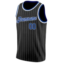 Custom Black White Pinstripe Royal-White Authentic Basketball Jersey