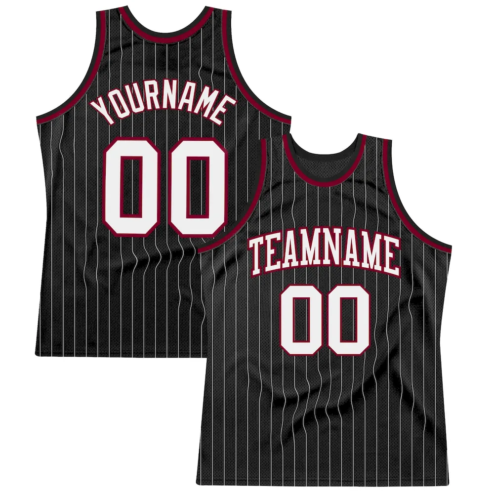 Custom Black White Pinstripe White-Maroon Authentic Basketball Jersey