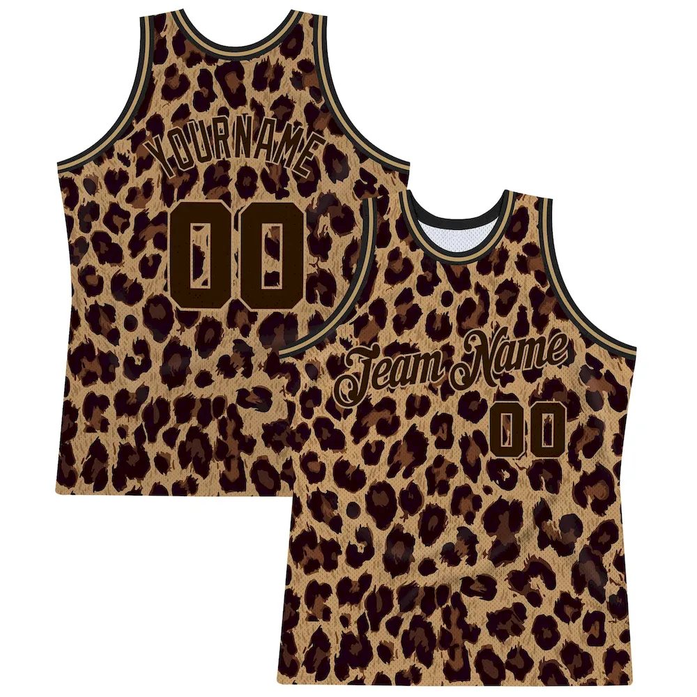 Custom Brown Brown-Old Gold 3D Pattern Design Leopard Authentic Basketball Jersey