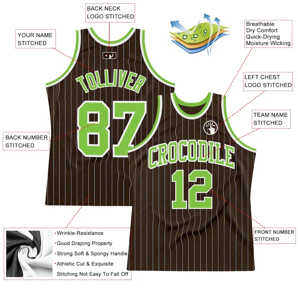 Custom Brown White Pinstripe Neon Green Authentic Basketball Jersey