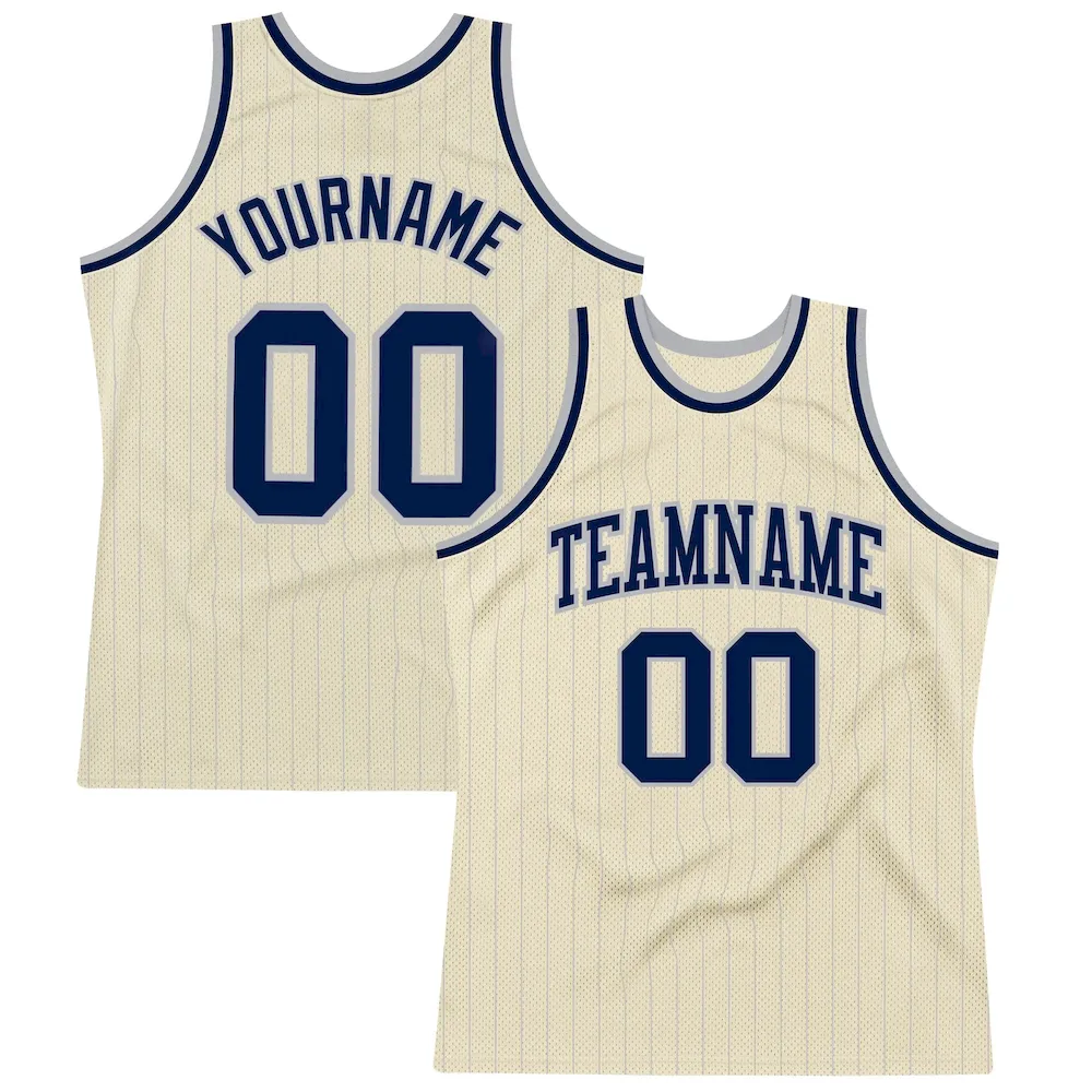 Custom Cream Gray Pinstripe Navy Authentic Basketball Jersey