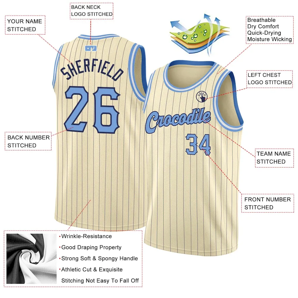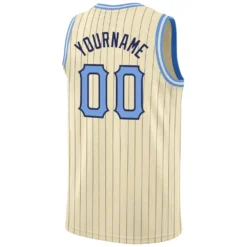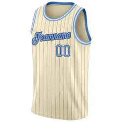 Custom Cream Navy Pinstripe Light Blue-Black Authentic Basketball Jersey