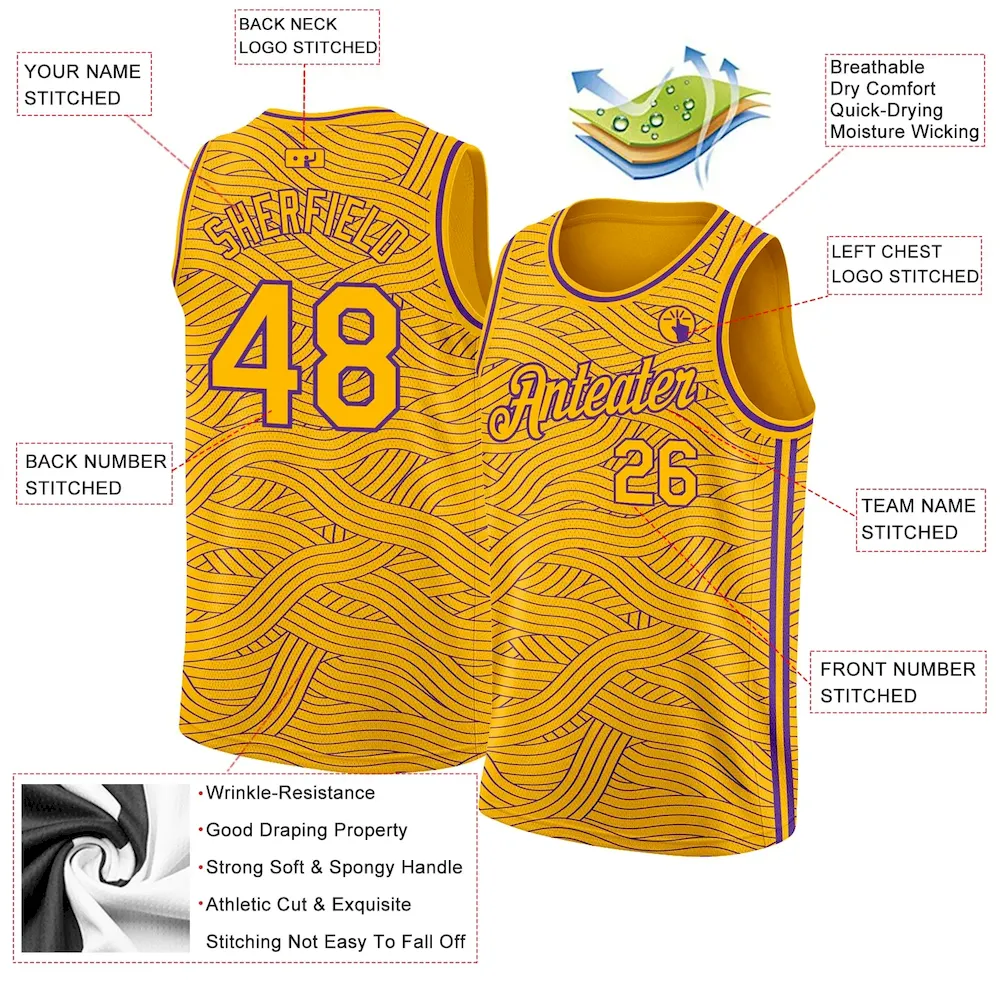 Custom Gold Purple Authentic City Edition Basketball Jersey
