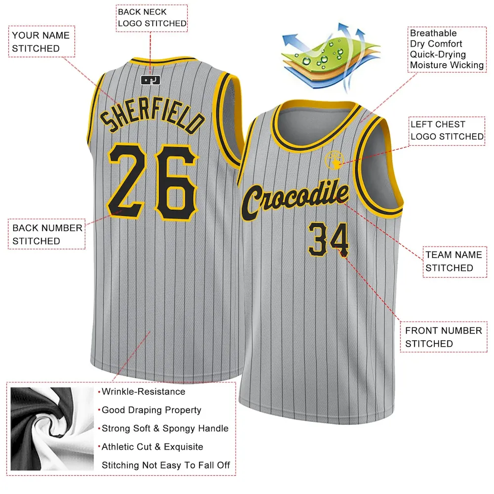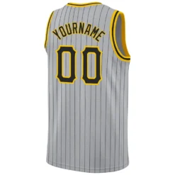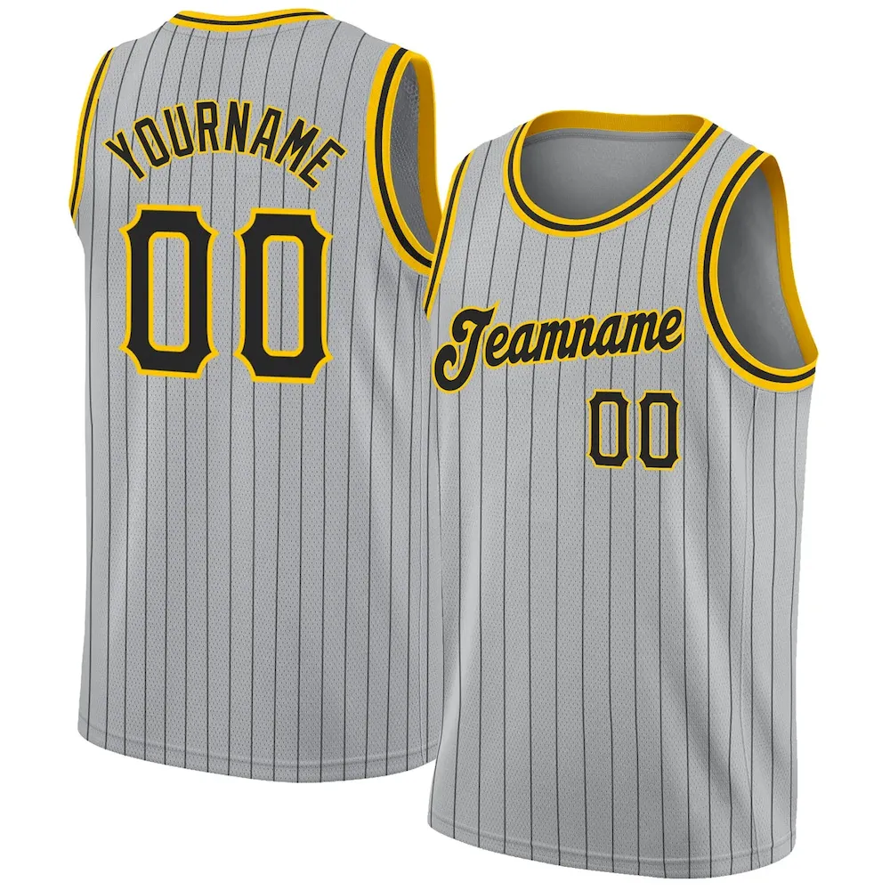 Custom Gray Black Pinstripe Black-Gold Authentic Basketball Jersey