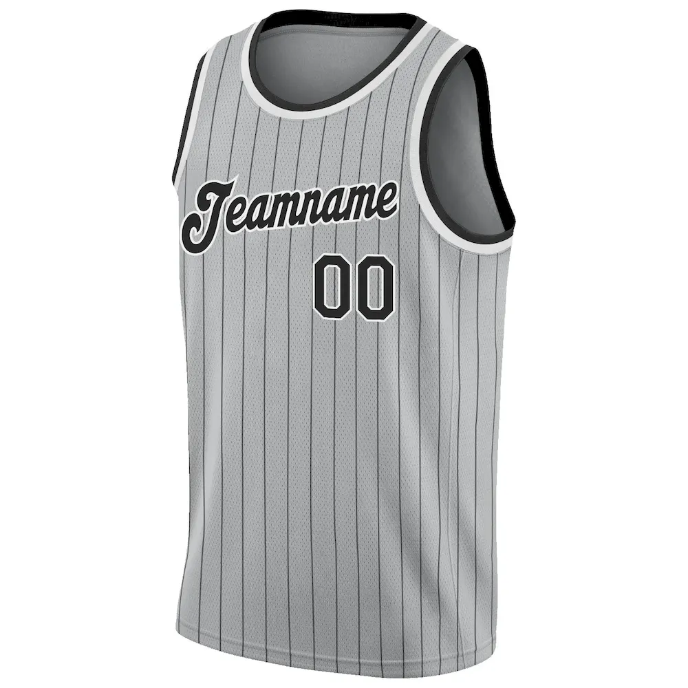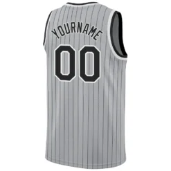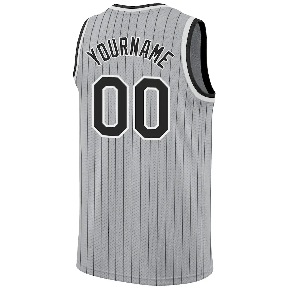 Custom Gray Black Pinstripe Black-White Authentic Basketball Jersey