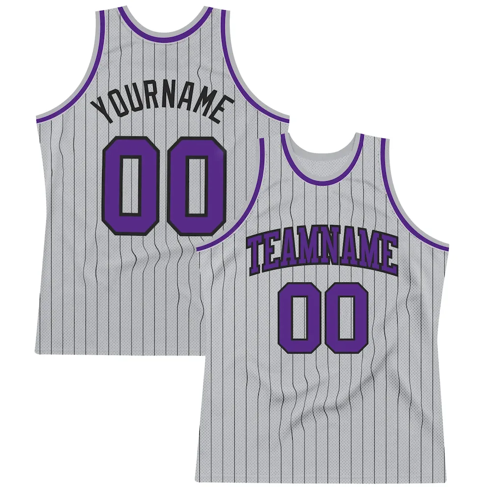 Custom Gray Black Pinstripe Purple Authentic Basketball Jersey
