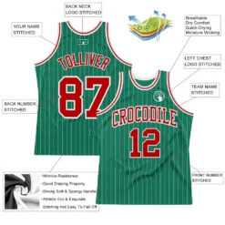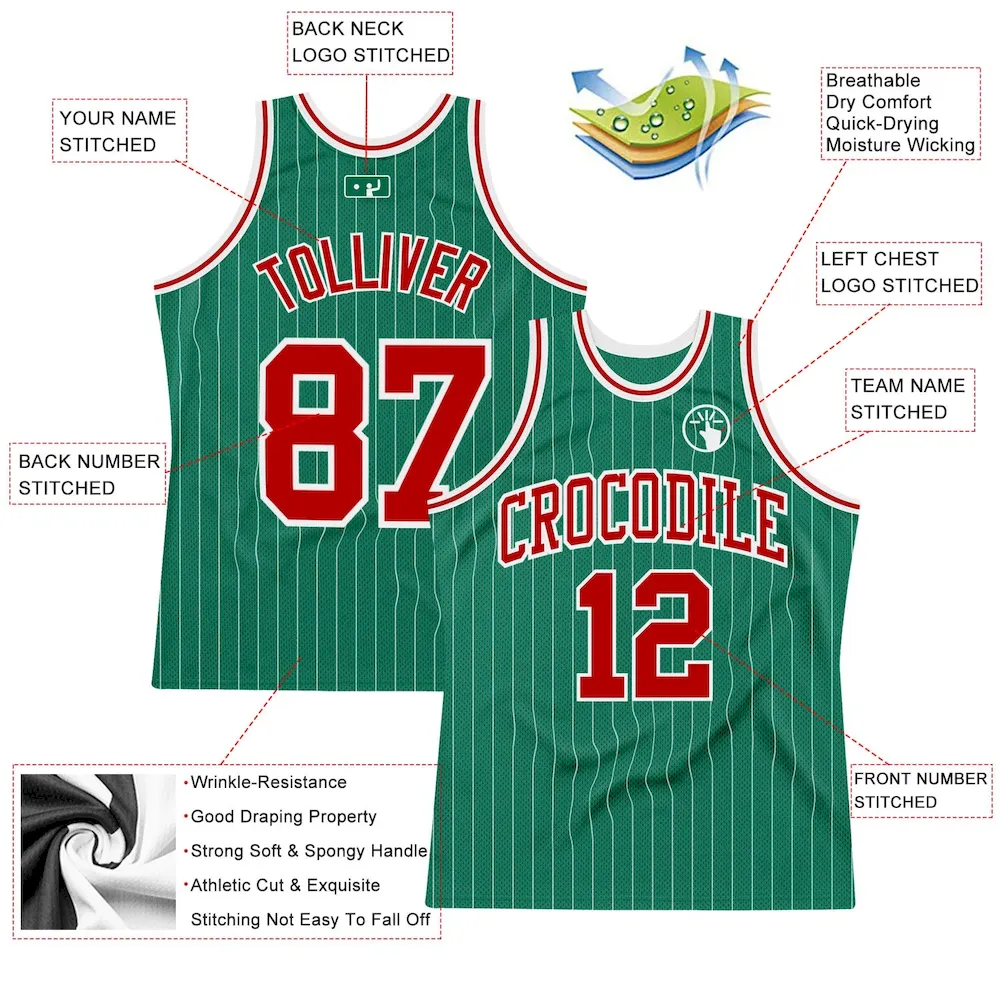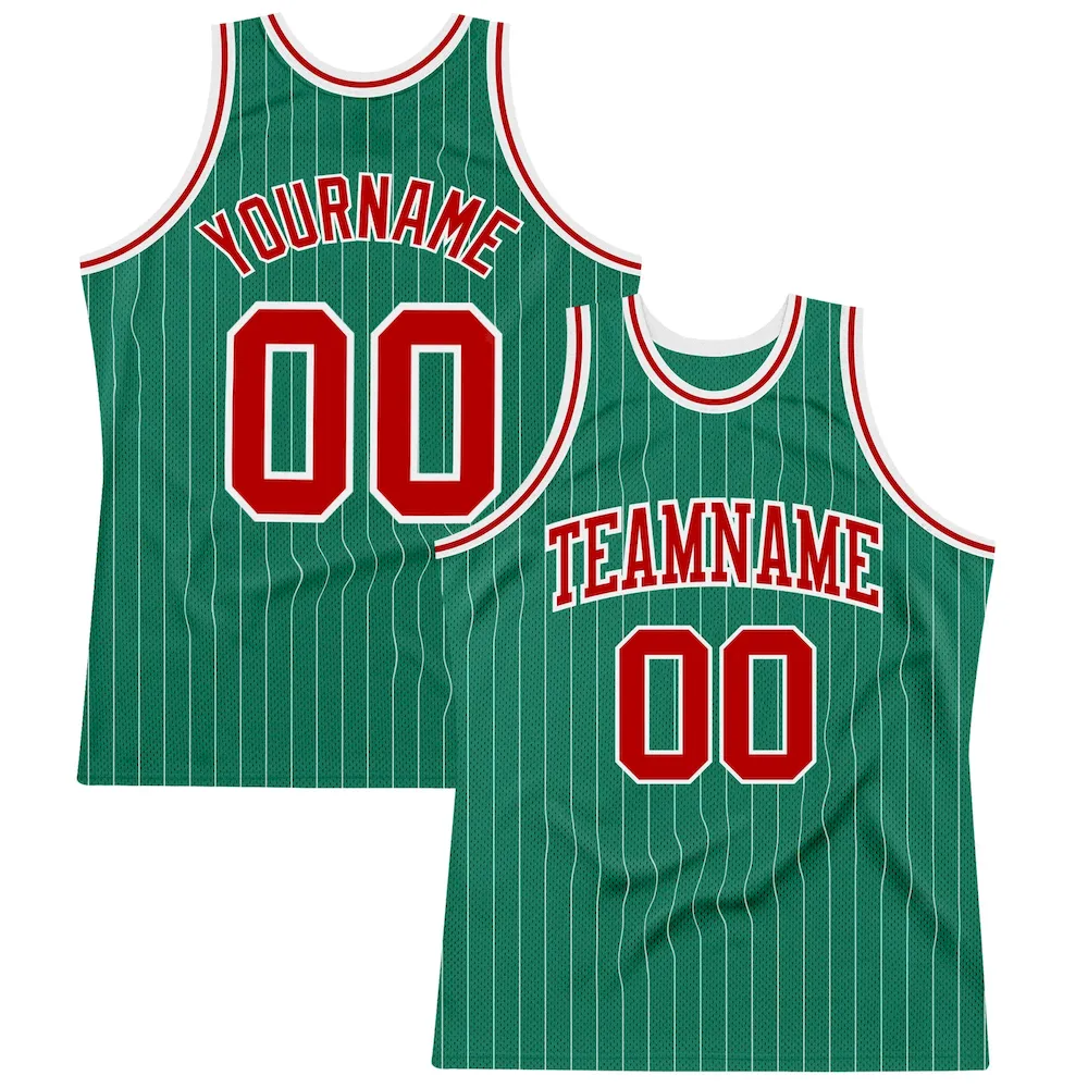Custom Kelly Green White Pinstripe Red Authentic Basketball Jersey
