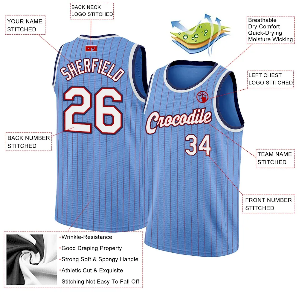Custom Light Blue Red Pinstripe White-Navy Authentic Basketball Jersey