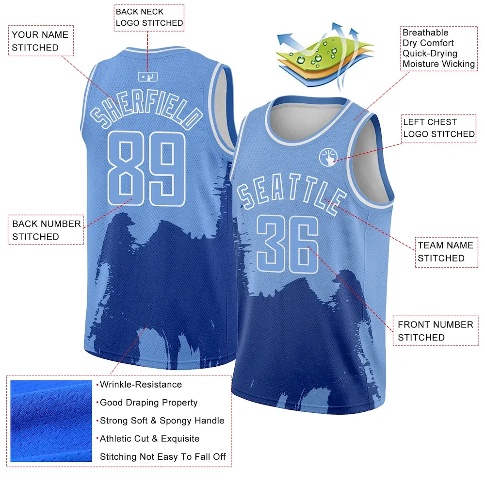 Custom Light Blue White 3D Pattern Design Abstract Grunge Halftone Art Authentic Basketball Jersey