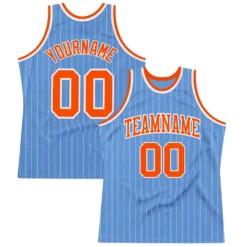 Custom Light Blue White Pinstripe Orange Authentic Basketball Jersey