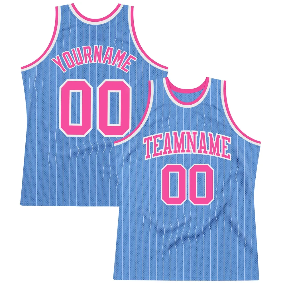 Custom Light Blue White Pinstripe Pink Authentic Basketball Jersey