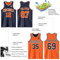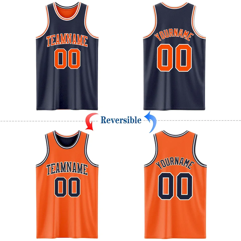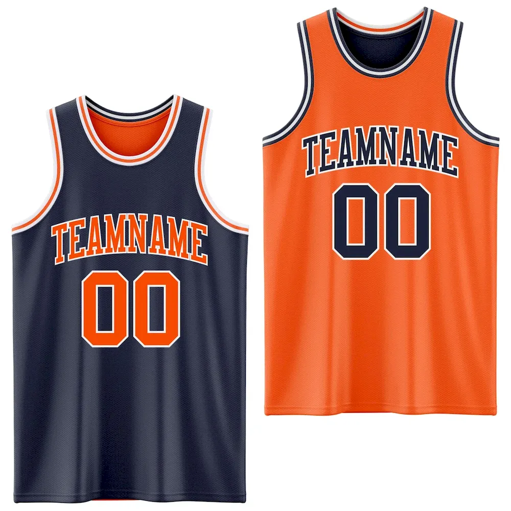 Custom Navy Orange-White Reversible Double Side Basketball Jersey