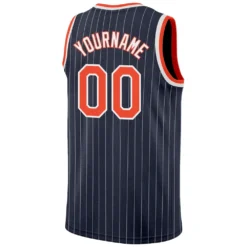 Custom Navy White Pinstripe Orange-White Authentic Basketball Jersey