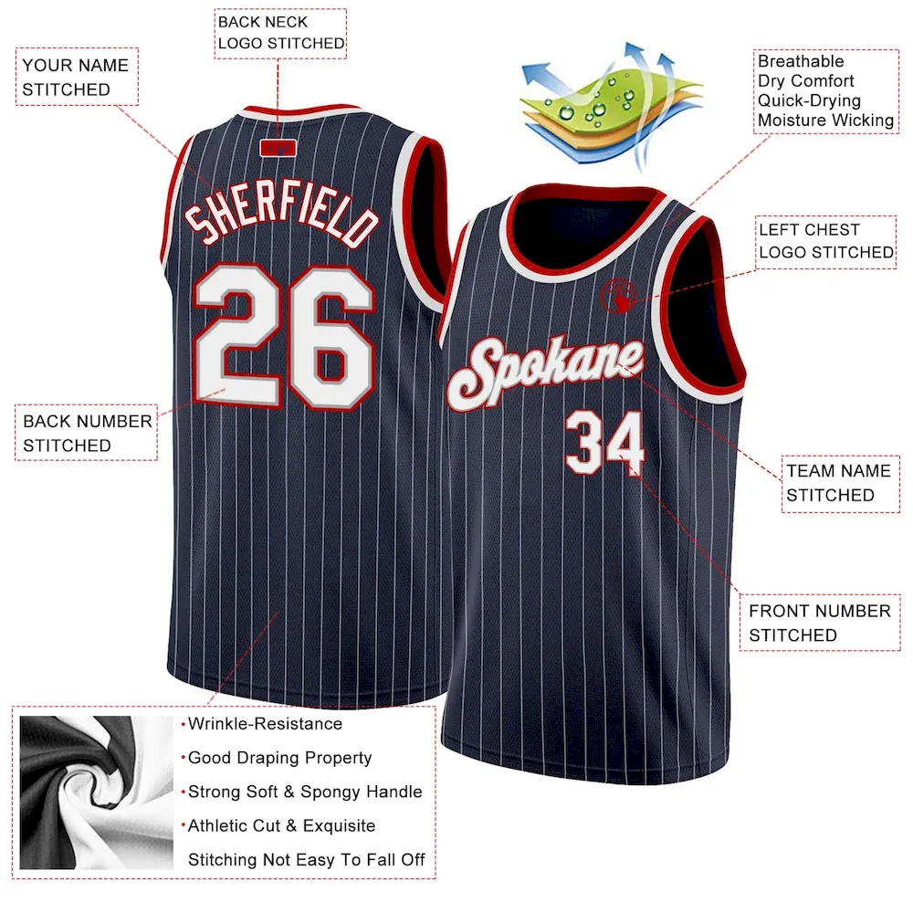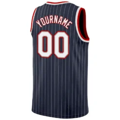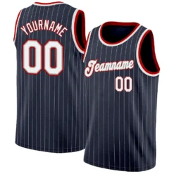 Custom Navy White Pinstripe White-Red Authentic Basketball Jersey