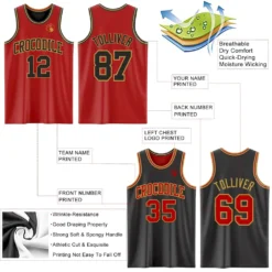 Custom Red Black-Old Gold Reversible Double Side Basketball Jersey