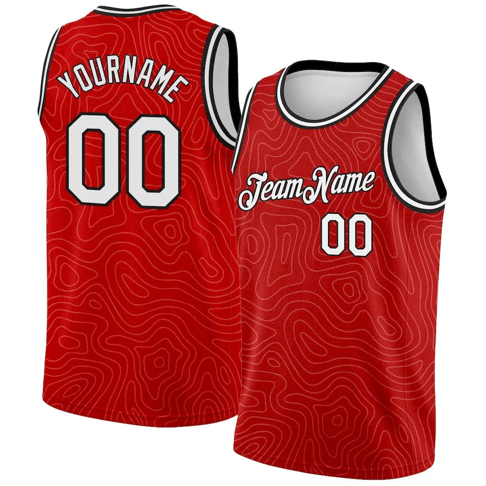 Custom Red White-Black Rounded Zig Zag Lines Authentic City Edition Basketball Jersey