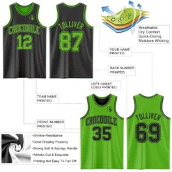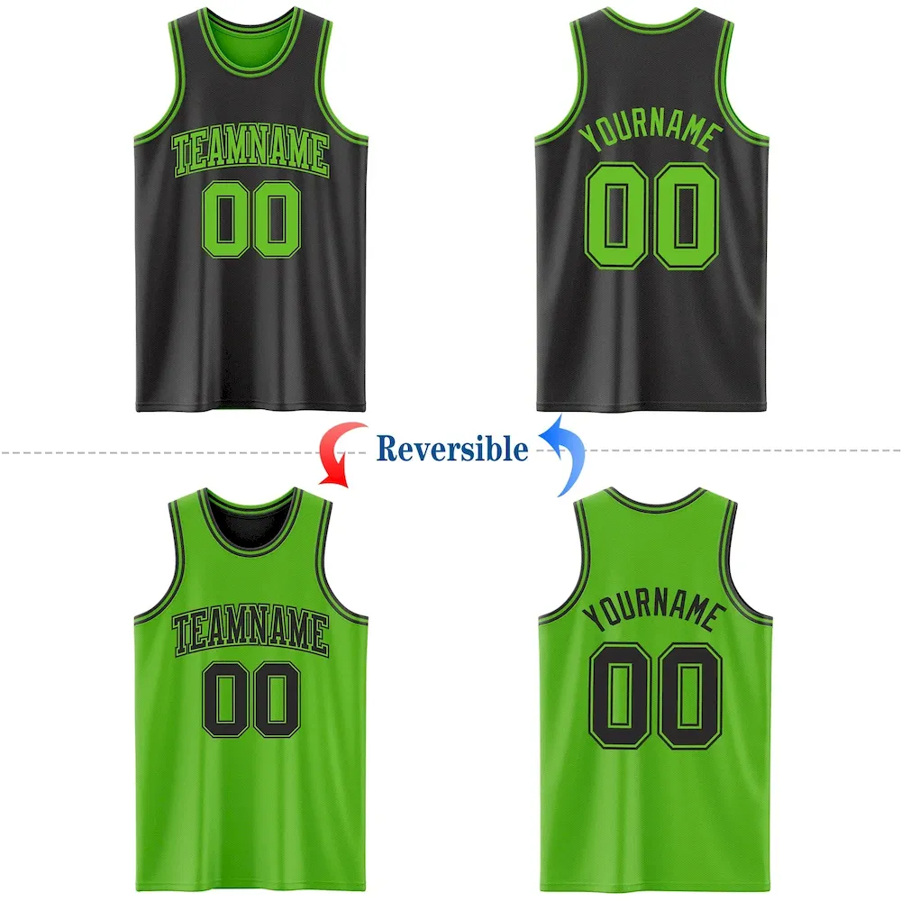 Custom Reversible Black Aurora Green Double Side Basketball Jersey