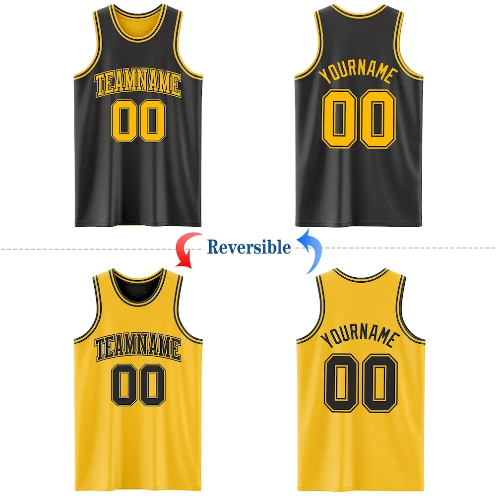 Custom Reversible Black Gold Double Side Basketball Jersey