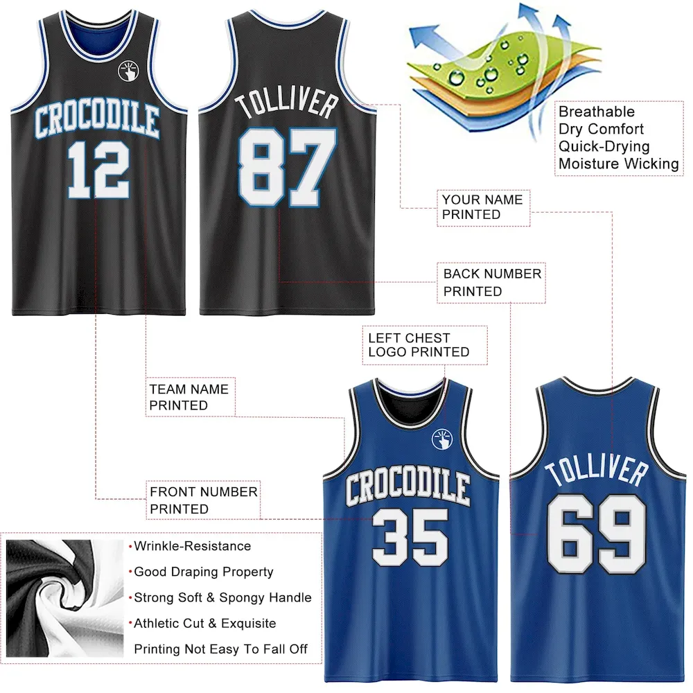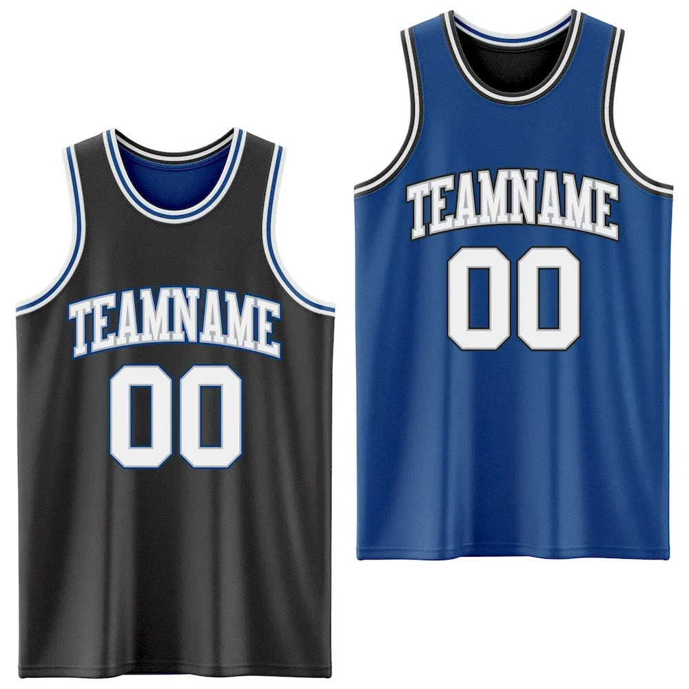 Custom Reversible Black Gray-Blue Double Side Basketball Jersey
