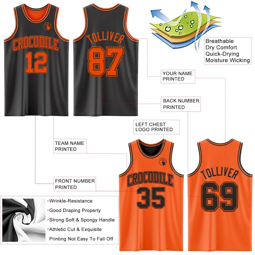 Custom Reversible Black Orange Double Side Basketball Jersey