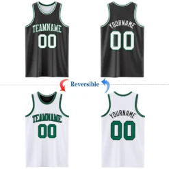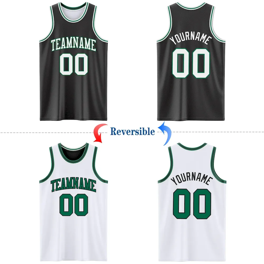 Custom Reversible Black White-Kelly Green Double Side Basketball Jersey