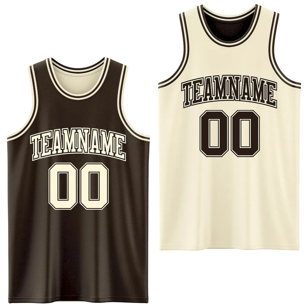 Custom Reversible Brown Cream Double Side Basketball Jersey