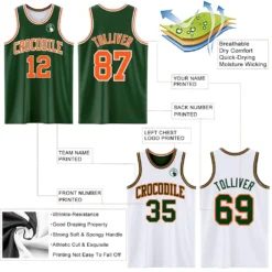 Custom Reversible Green Orange-White Double Side Basketball Jersey