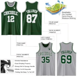Custom Reversible Green White-Gray Double Side Basketball Jersey