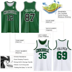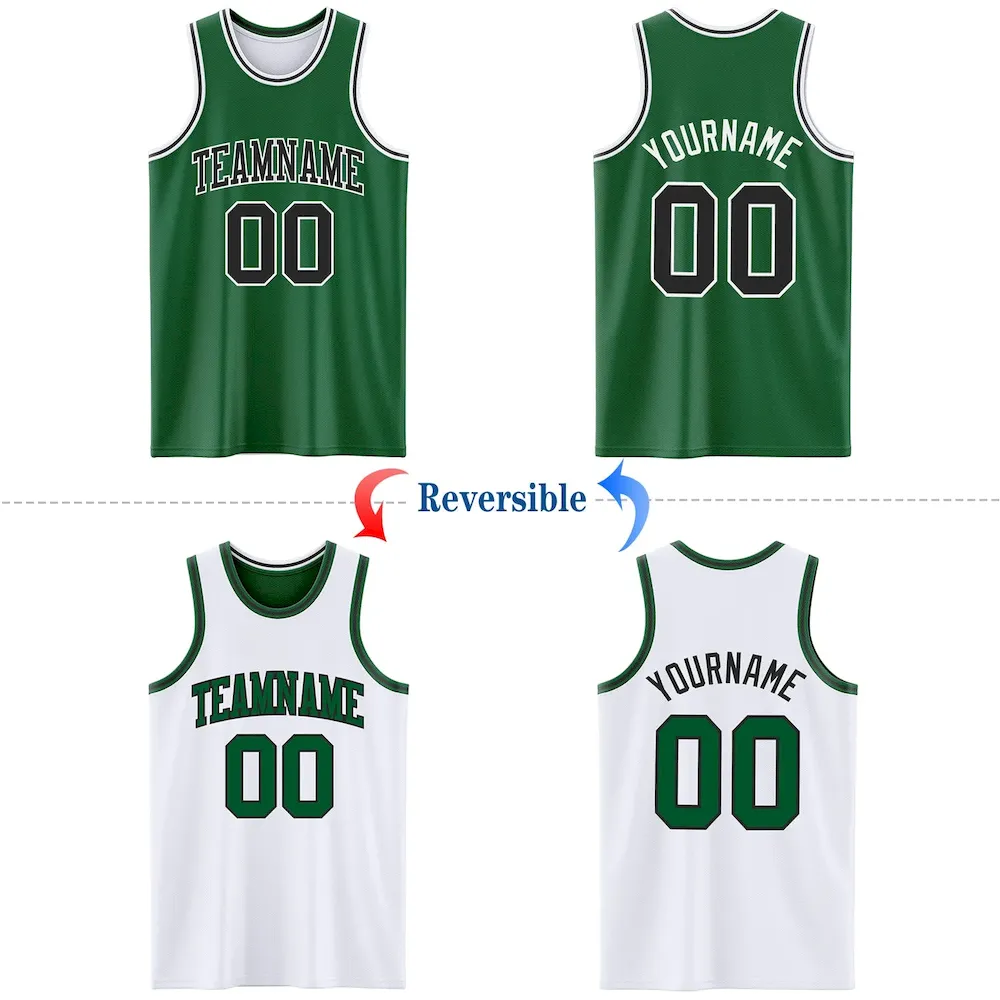 Custom Reversible Kelly Green Black-White Double Side Basketball Jersey