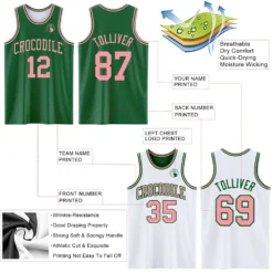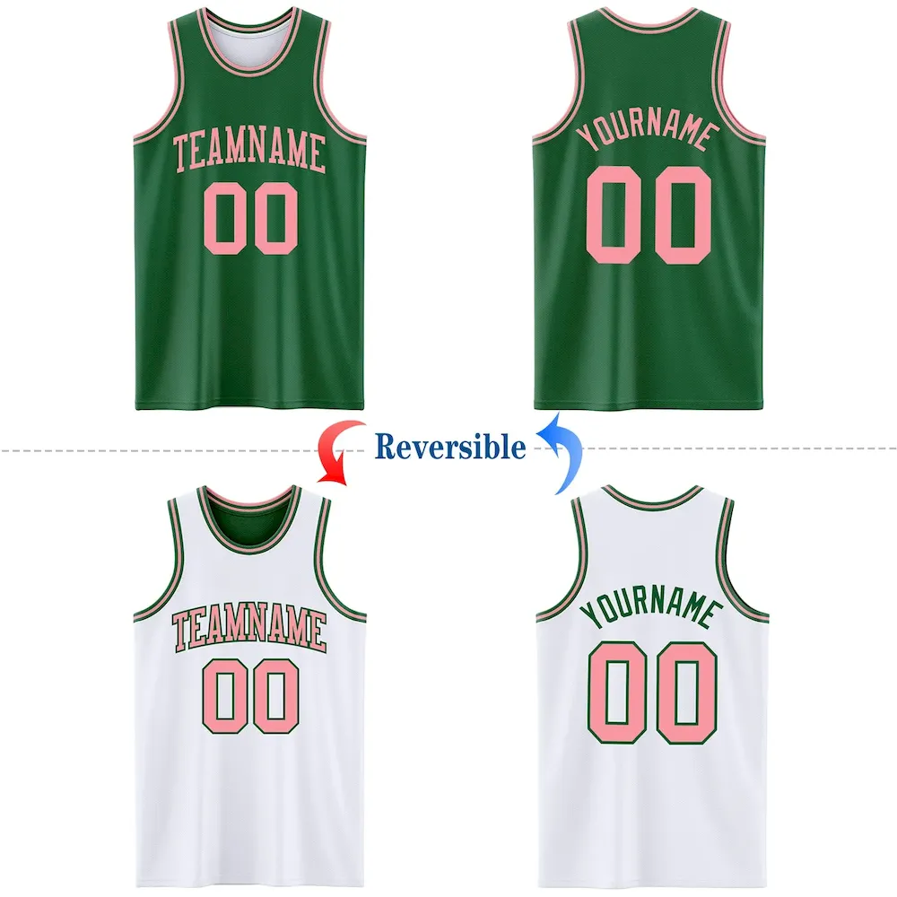 Custom Reversible Kelly Green Medium Pink Double Side Basketball Jersey